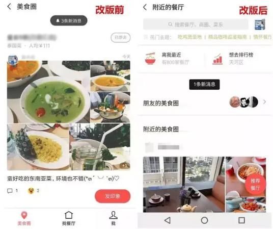 餐饮行业大繁荣,“吃货”力量不可忽视。微信“附近的餐厅”这次改版,不仅新增了搜索框、热门主题、美食排行榜,还将原来的“美食圈”、“找餐厅”、“我”三个模块进行打乱重组,升级成“朋友的美食圈”和“附近的美食圈”两大模块。经过整合,使用感得到了提升,给“吃货”们更加舒适的种草体验及分享平台。
